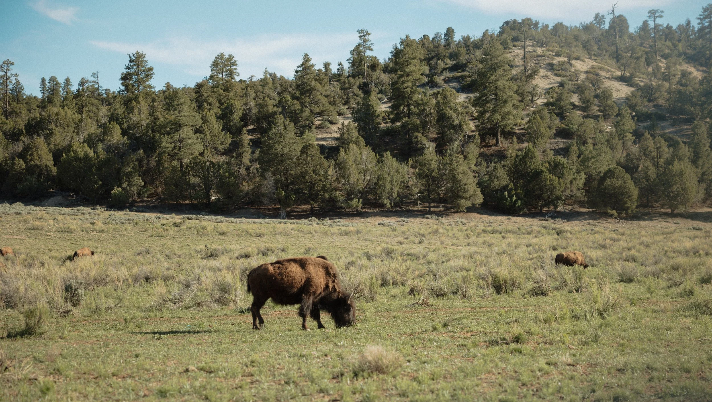 Our day wrapped up with grabbing some dinner—- I mean, we ugly scarfed down food!!! And a surprise heard of Buffalo right along the road… There must have been 30 of them.