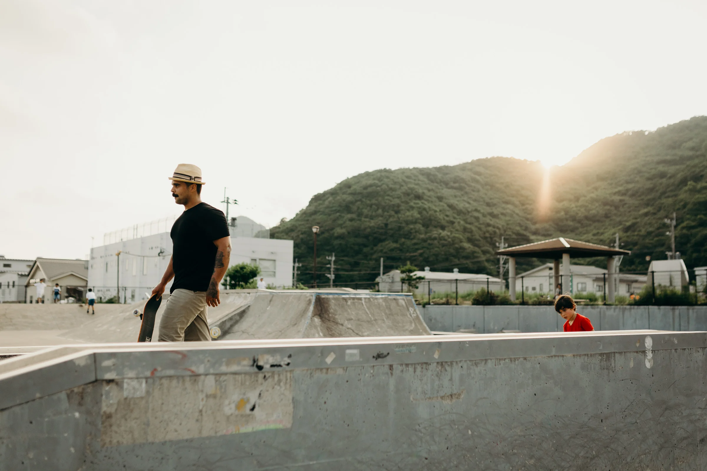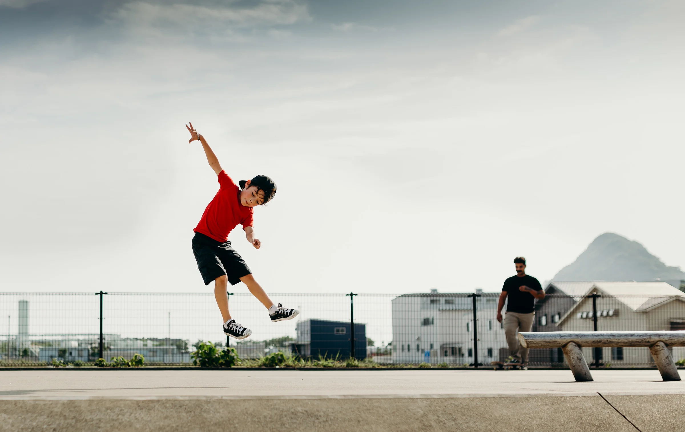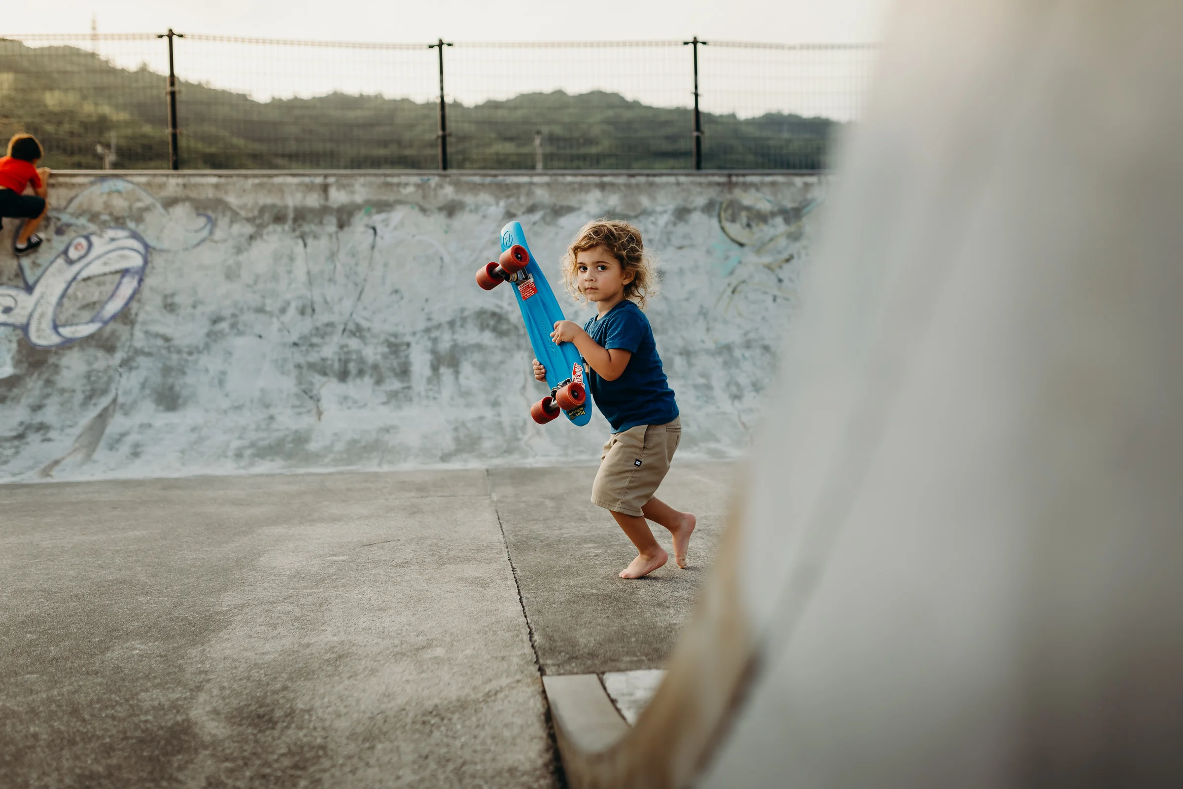 Summer began and we all had more time on our hands, so I started brainstorming where I would like to take them… My first impulse was a sunset beach shoot… Or maybe even downtown… But I really thought about it and said to myself, Iv done this many many times before… Where would the kids be most at ease, be themselves? Where would they have fun!? I remembered Cass recently uploading some pics from their trip to a skatepark down in Nagasaki… The boys were so so happy in all of the shots! So I just knew this was where we needed to be…
