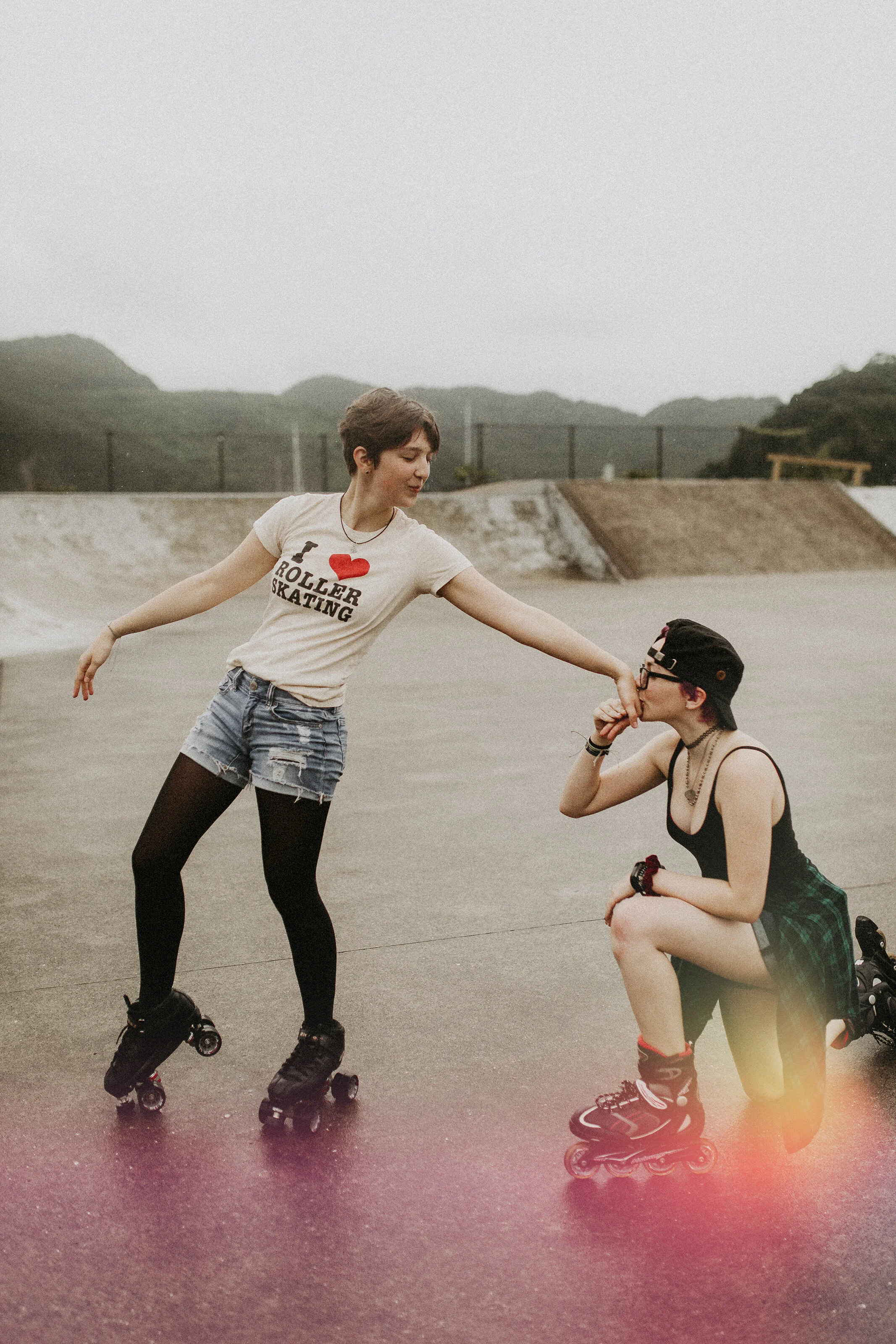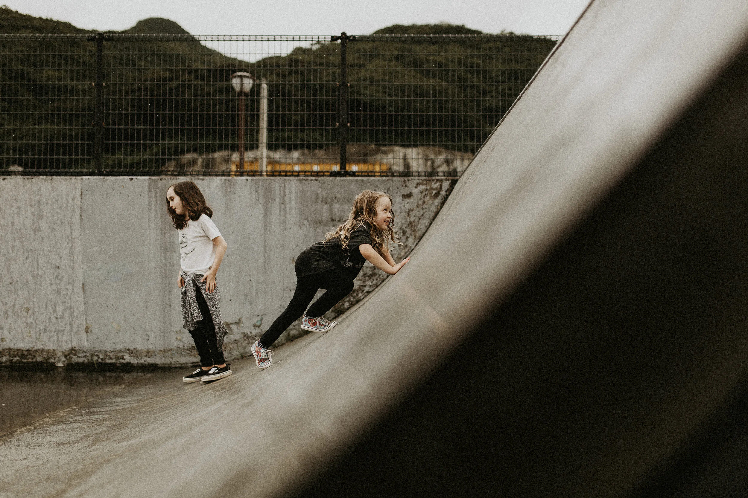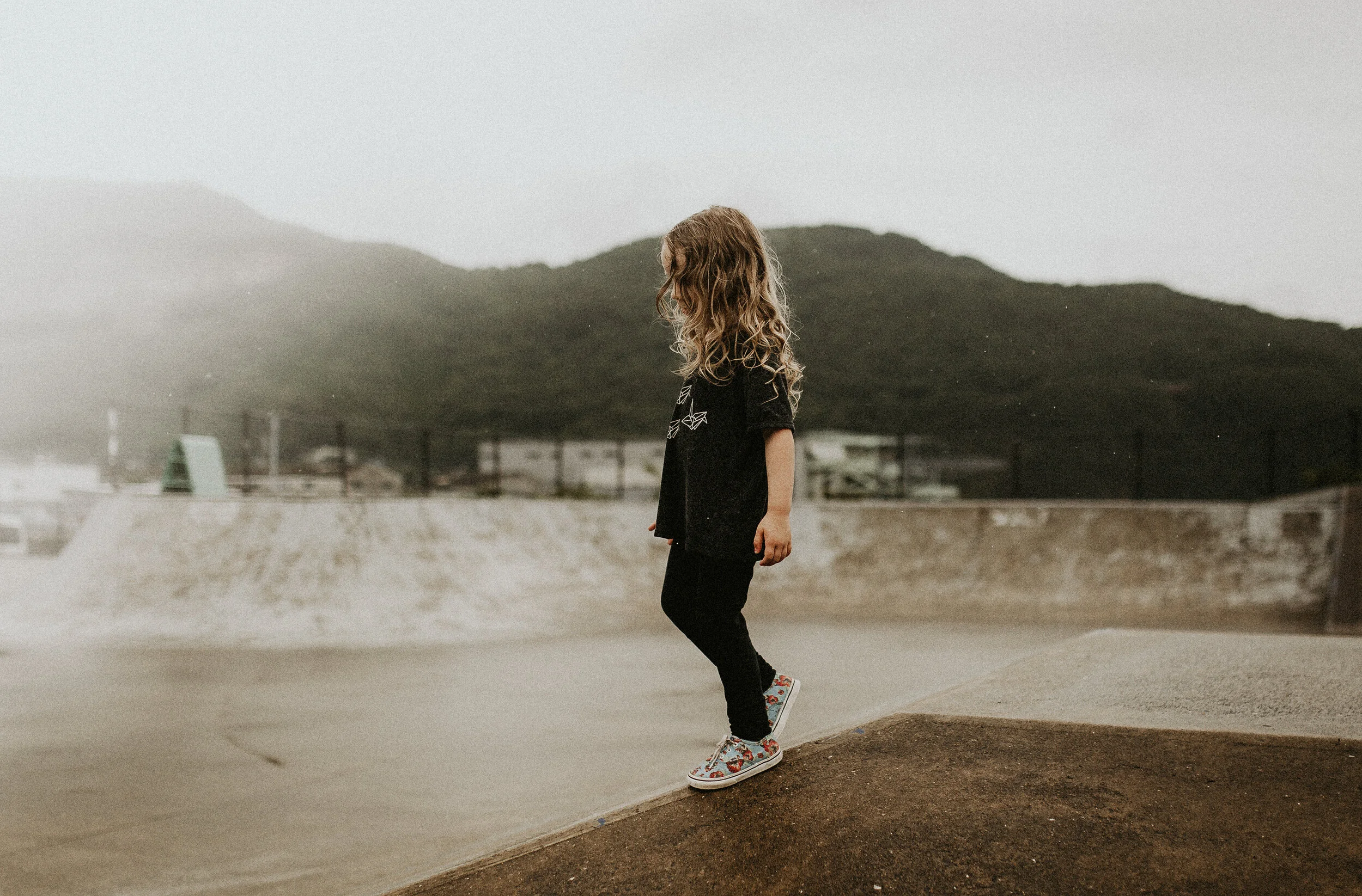 One of her Gal Pals here also loves skating, so a couple weeks ago we loaded some vans, a ton of kids, dog, and headed down to Koa Skate Park—- I know this park a little since doing a SUPER fun photo shoot down there about 2 years ago! Right on the water, mountain views, a bit of graffiti, and well, since we are here in Japan, RAIN. That didnt stop any of our crew tho… We had the park to ourselves, so the girls took over! I love seeing my eldest in her element, and a BFF by her side was just so great!
