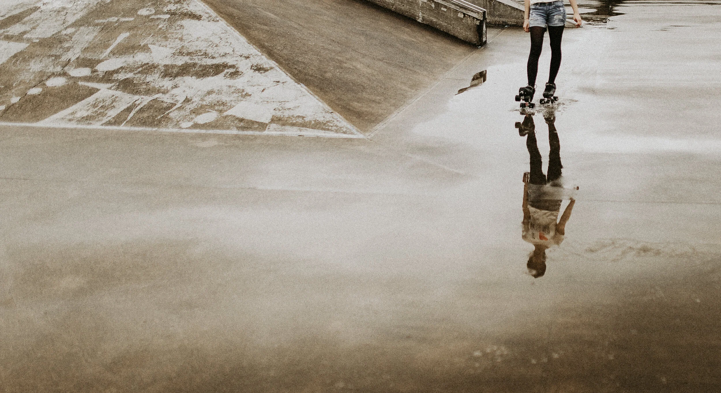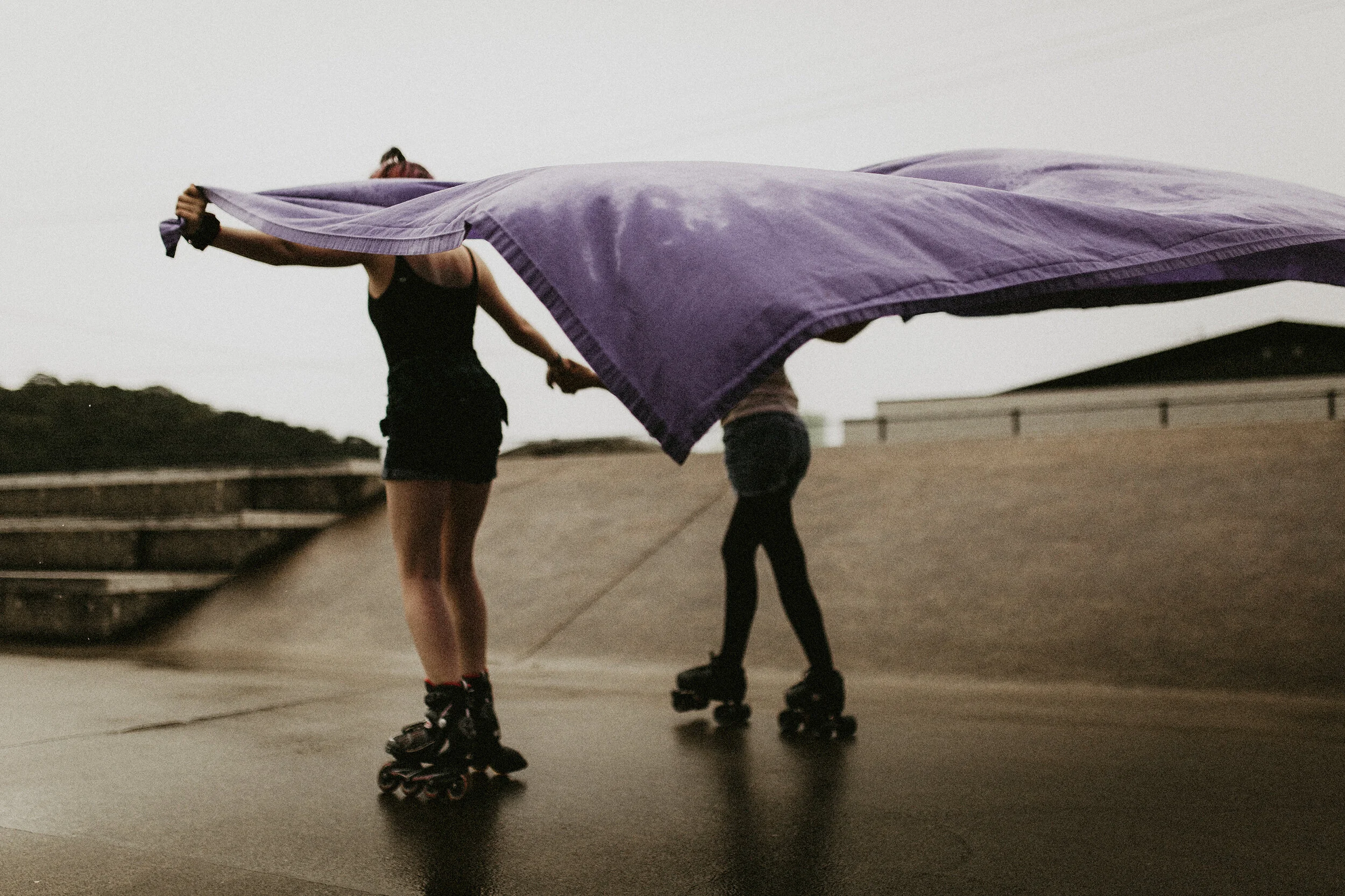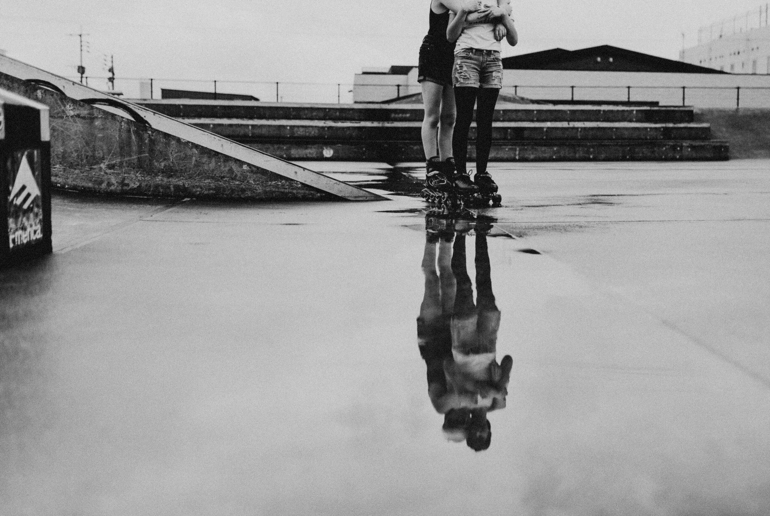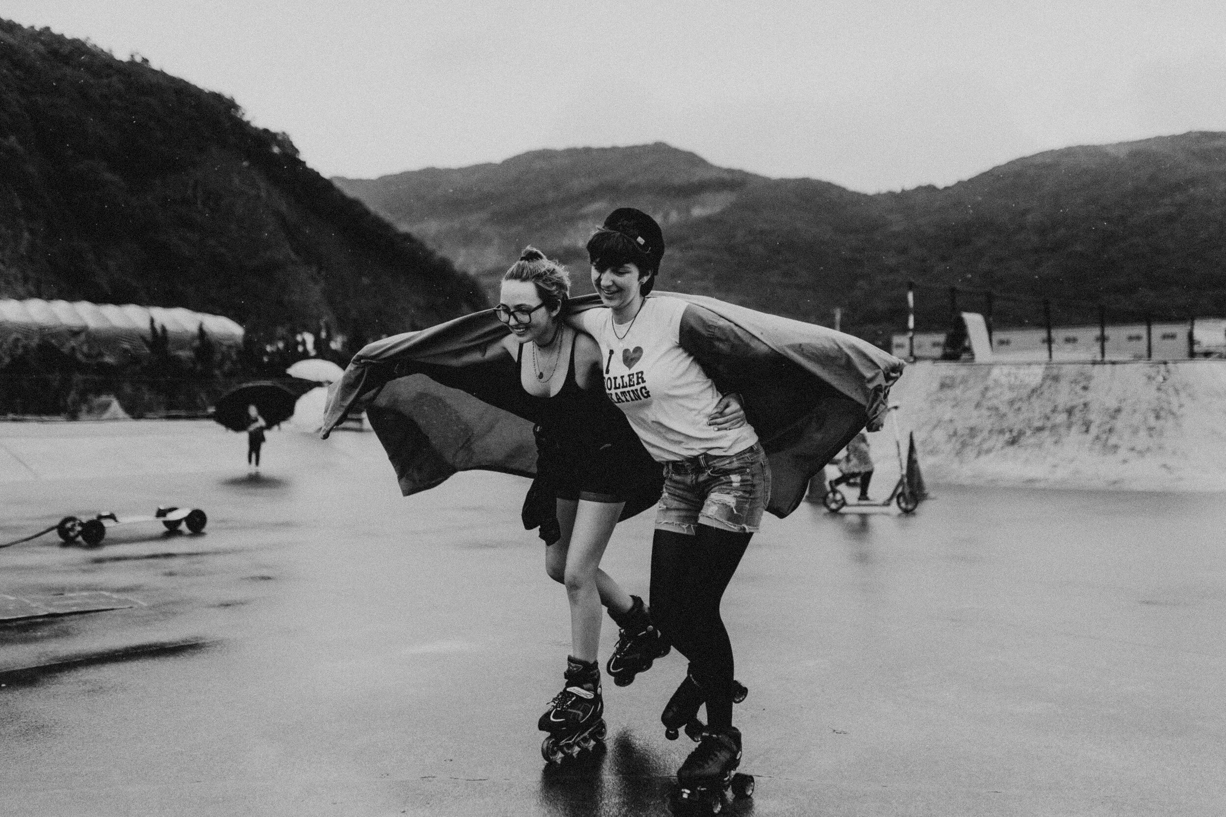 Tea also showed her little dare-devil self, running to the tops of the ramps, skateboard in hand… She scootered around, zoomed through puddles, barefoot and wild. Story joined in with water splashing and telling her tales, dancing in the rain.
